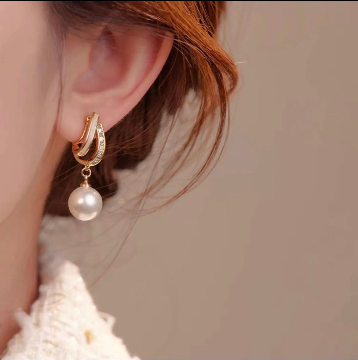 艶高 クリスタル光沢パール ゴールド色 揺れる イヤリング♪